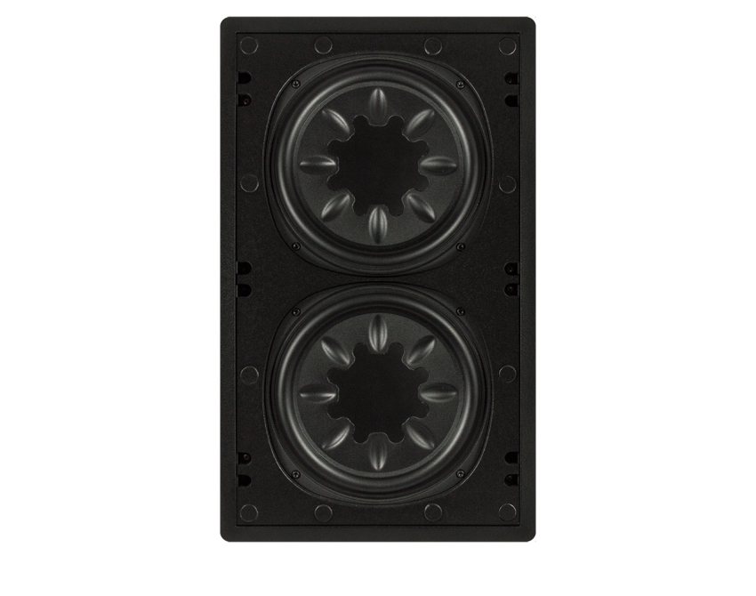 The new IW-210 is a dual 10” in-wall sub. Easily installed post-construction, its small size (22”H x 13”W x 3.875”D) is capable of big sound because of the newly designed low-profile 10” subwoofers. Shipped with a magnetic, no-bezel grille, it blends perfectly into any space. Easy installation, great sound and beautiful looks – the IW210 has it all.